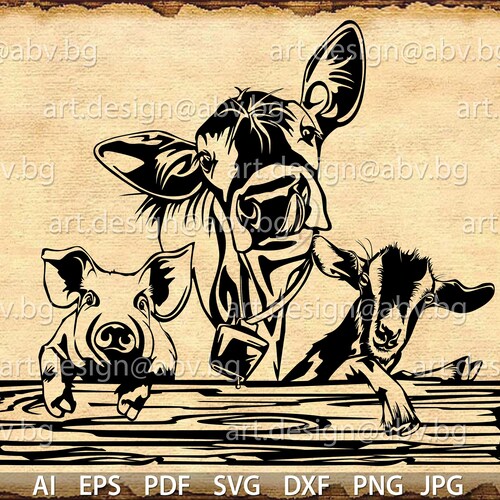 Vector Animal Farm Farmhause Ai Eps Pdf Svg Dxf Png Etsy Animal Stencil Farm Animals Drawing Illustrations